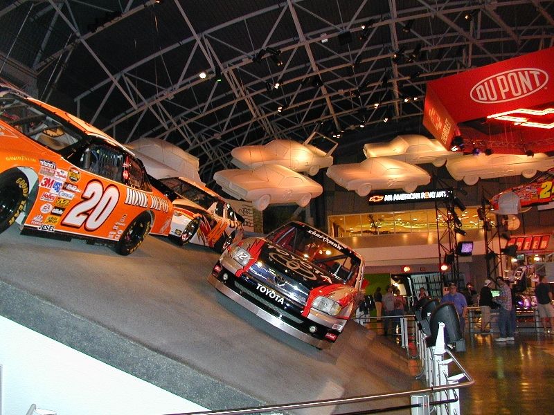visualization of the history of cars that ran the Daytona 500 showing the 37 degree banking of a corner