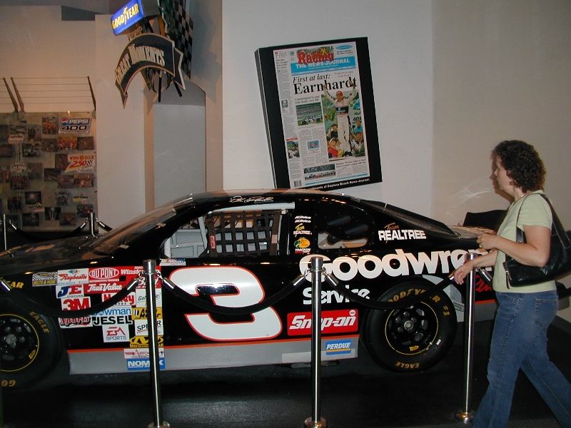 Dale Earnhardt's car--The Intimidator, #3. A small walk-through theater shows the final laps of all the filmed Daytona 500's, except for the one Michael Waltrip won because Dale died on the last lap running into the wall. They skip the 2002 race out of respect for Dale. Sorry Michael! |