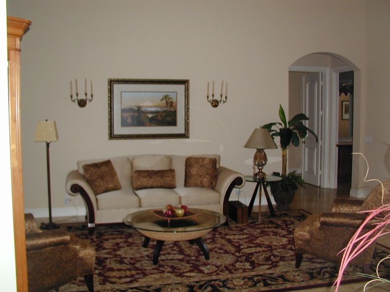 the seating area in front of the huge fireplace, the door to the master bedrooom seen, the east part of the house
