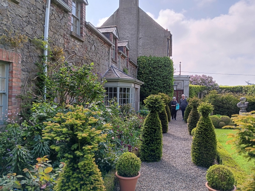 My wife, Melissa, and brother Mike stroll the luxurious gardens that grace the Collon House.
