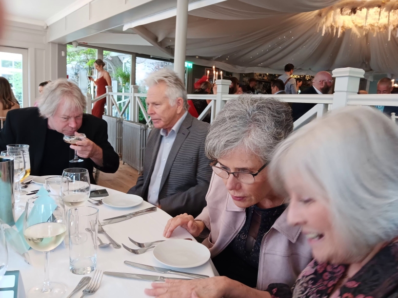 from left to right, Mark Schneider, Jim Schneider and his spouse, Sabrina, and Melissa Schneider, my spouse
